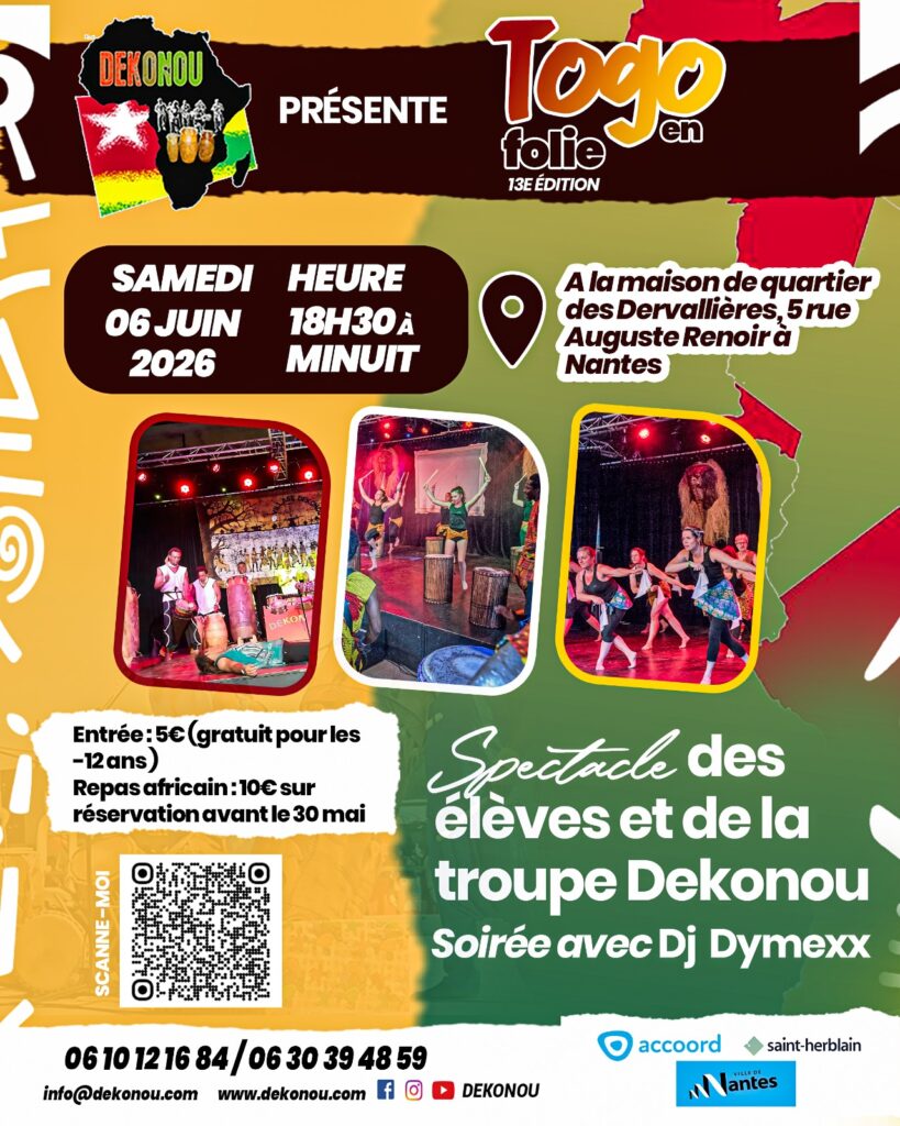 Au programme de la soirée, démonstrations de danses par nos élèves, repas africain, spectacle du groupe Dekonou, soirée animée par DJ Dymexx !